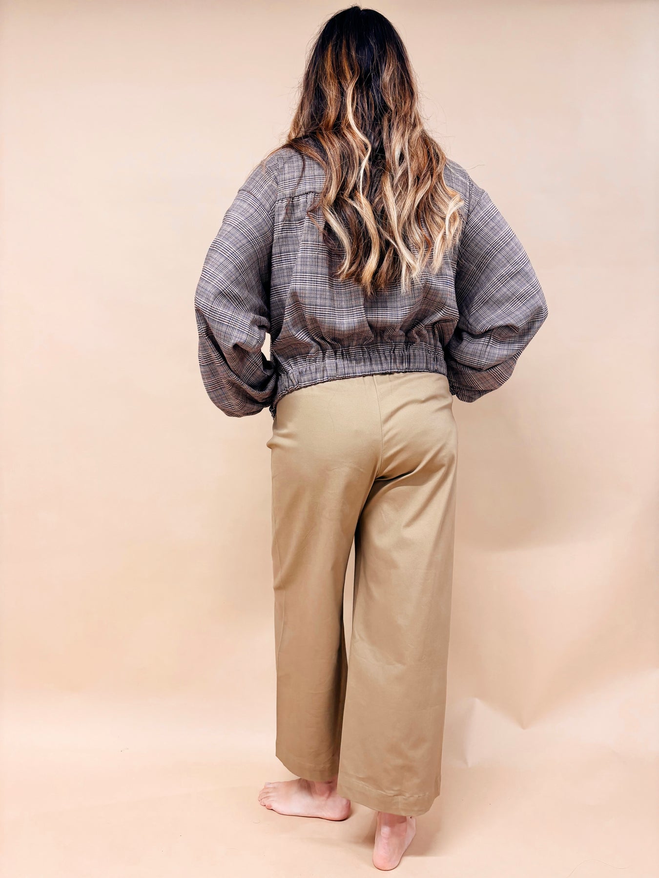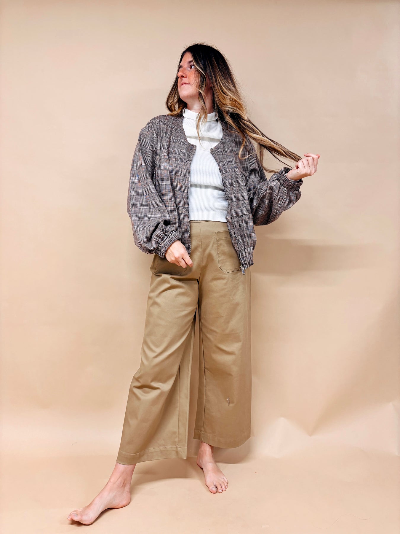 The Isabelle is another one of our favorites for this collection! Designed in a beautiful houndstooth plaid print, with a relaxed fit, zip front closure, and functional pockets, this piece will be one of your favorites too!