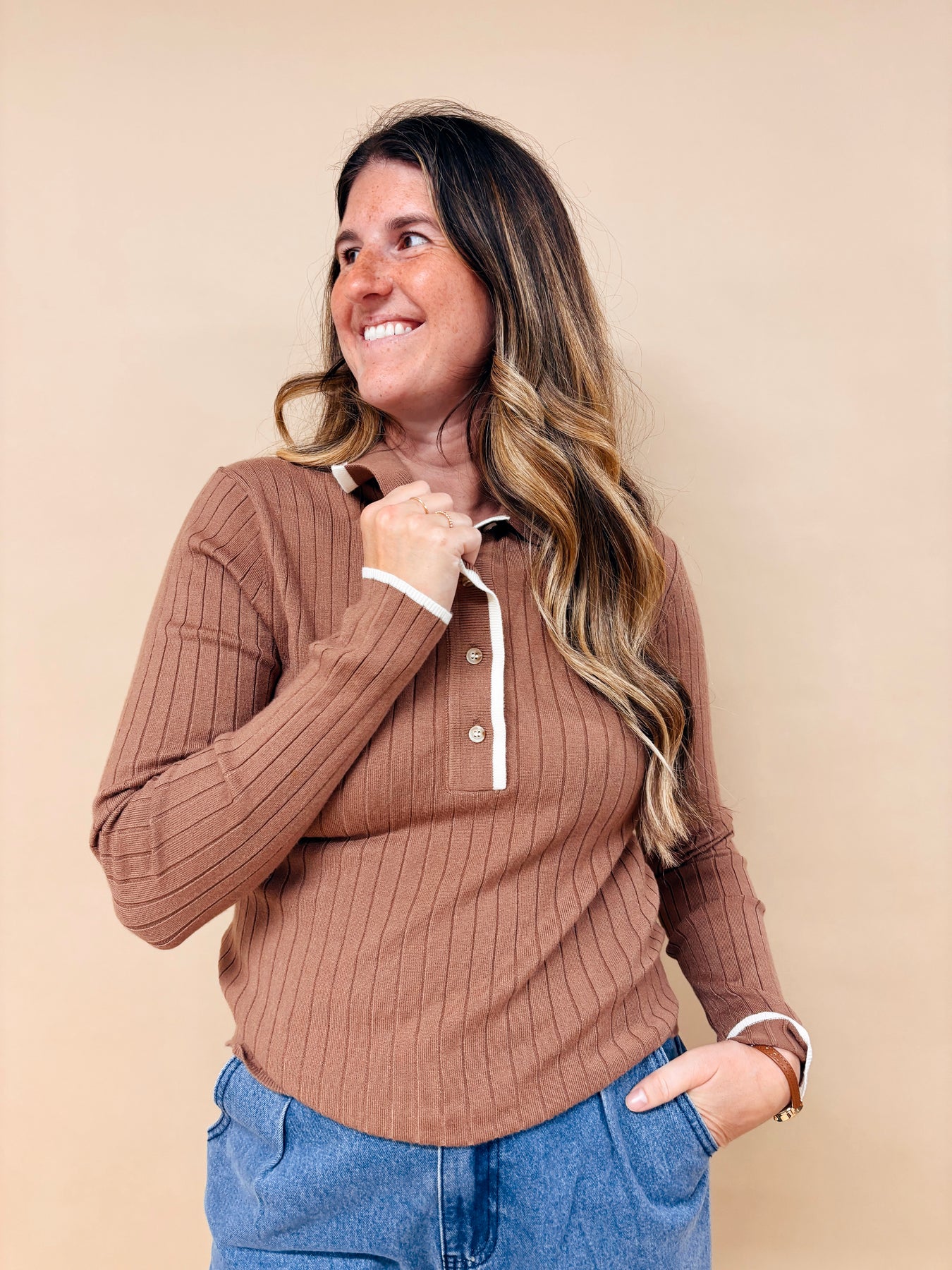 The Juliette is perfect for layering! Designed with a fitted silhouette, a rich brown color, and an exceptionally soft knit material, this piece is great with vests, under coats, or over a dress!