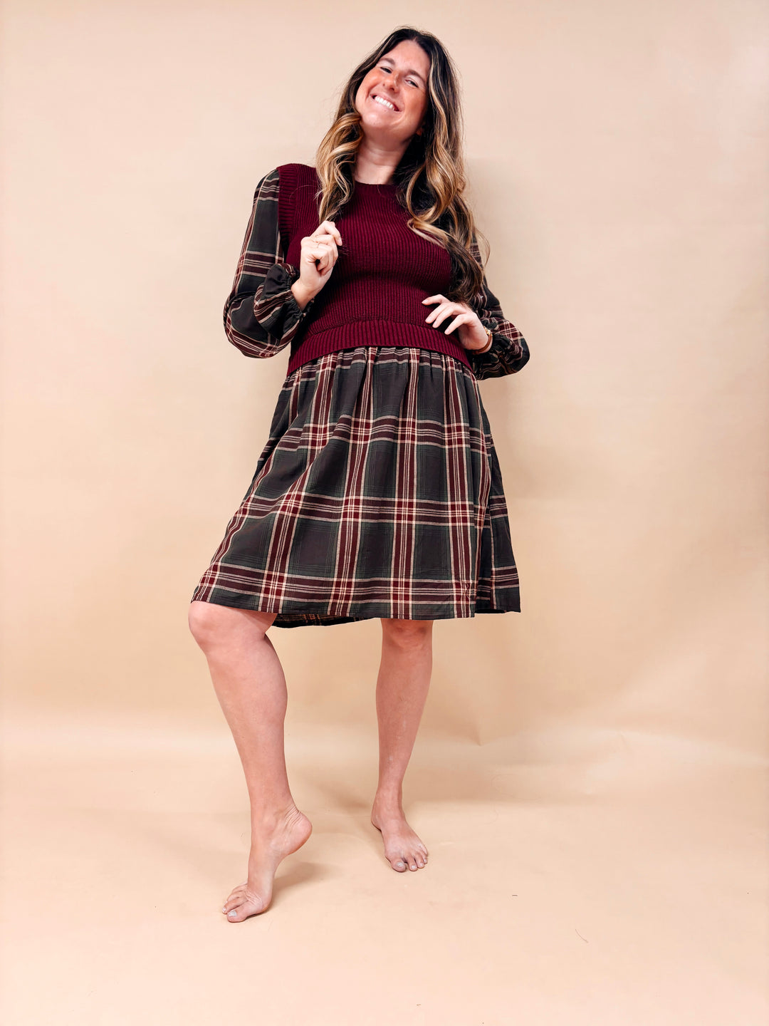 Colette Ruffle Sleeve Plaid Embroidered Mini Dress