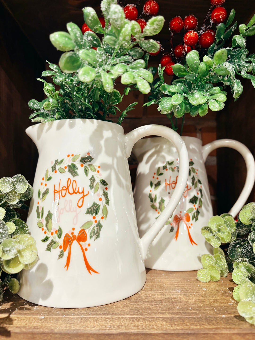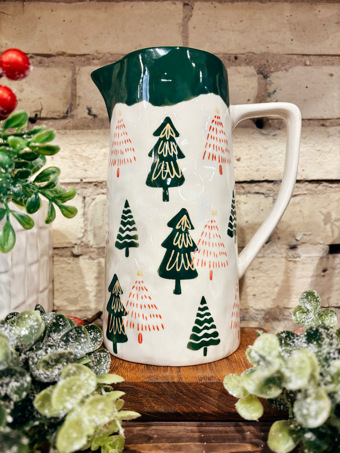 48 oz. Hand-Painted Stoneware Pitcher with Trees