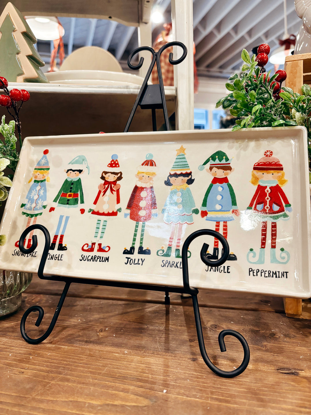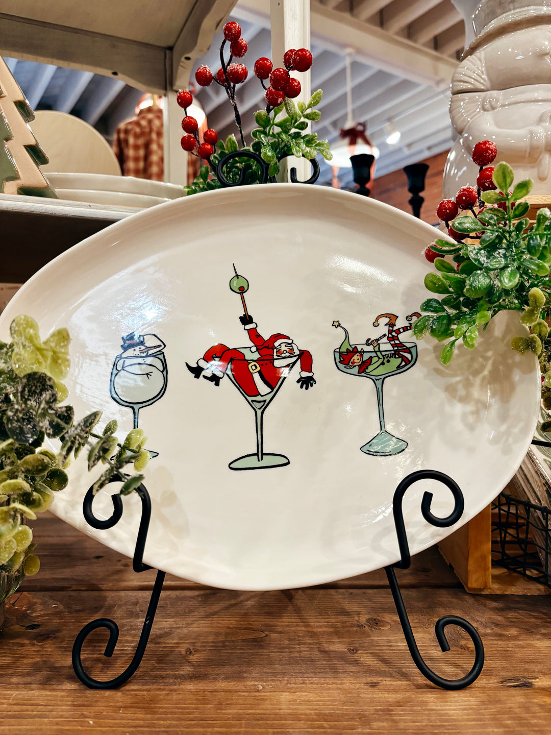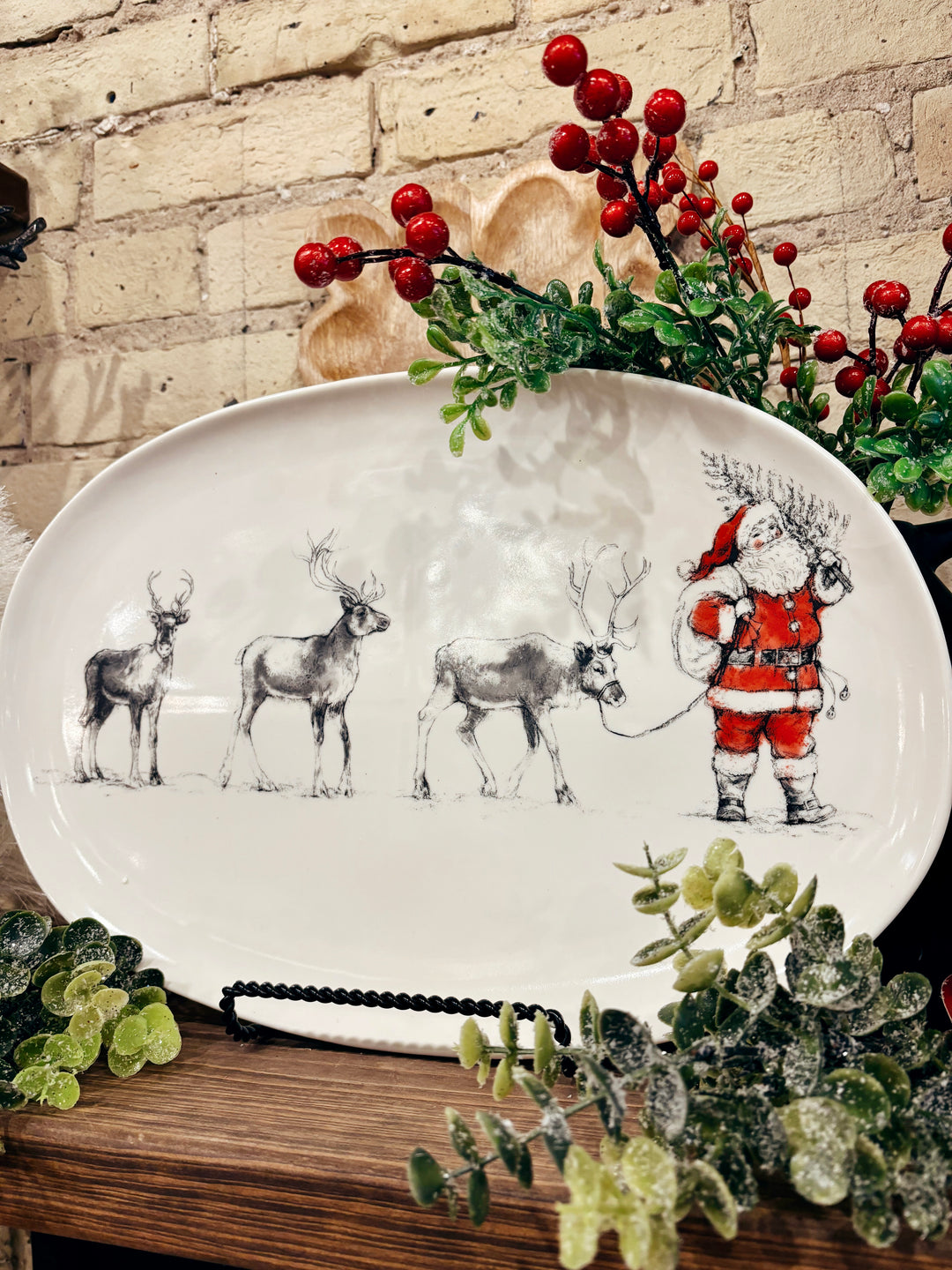Stoneware Serving Platter w/ Santa Leading Reindeer