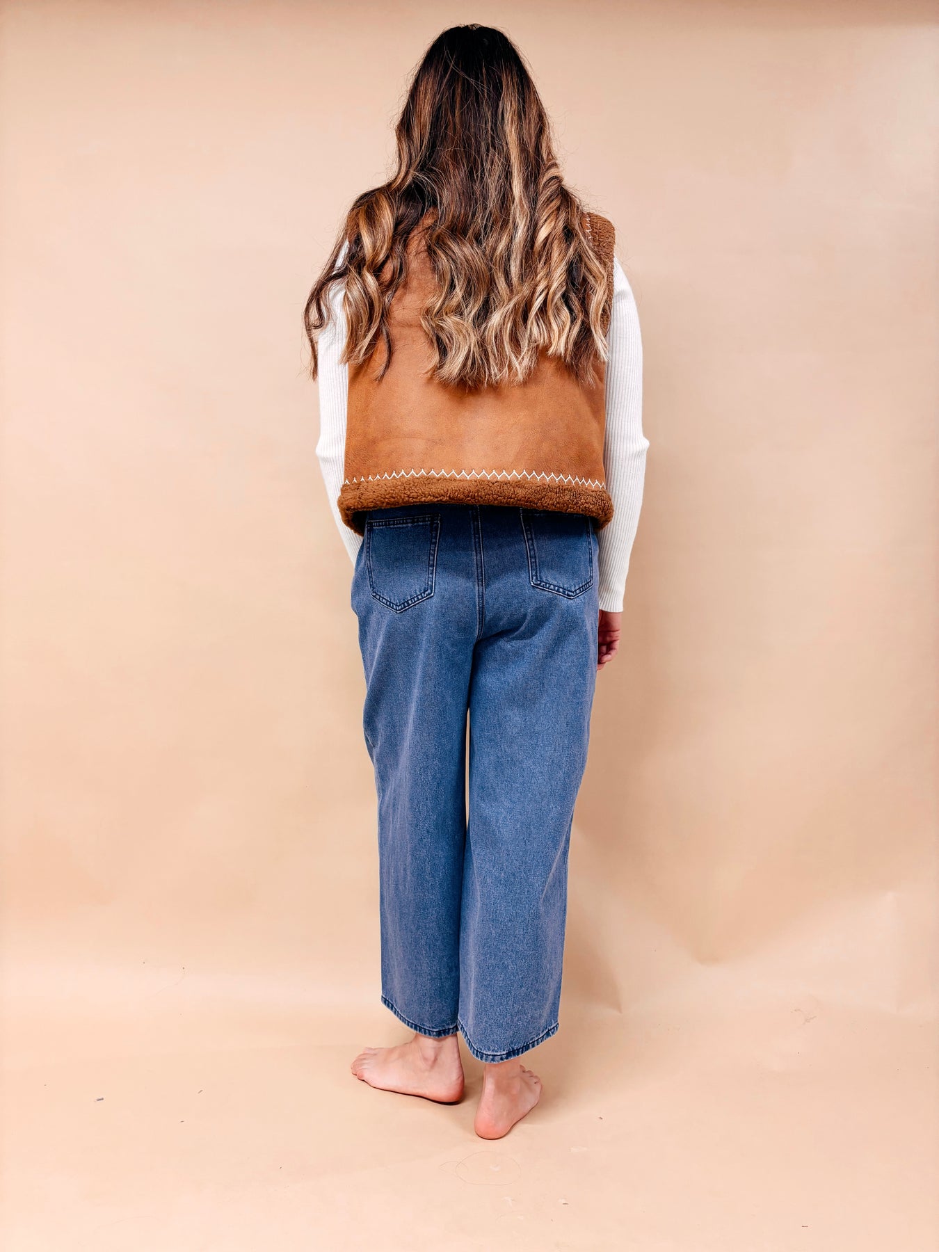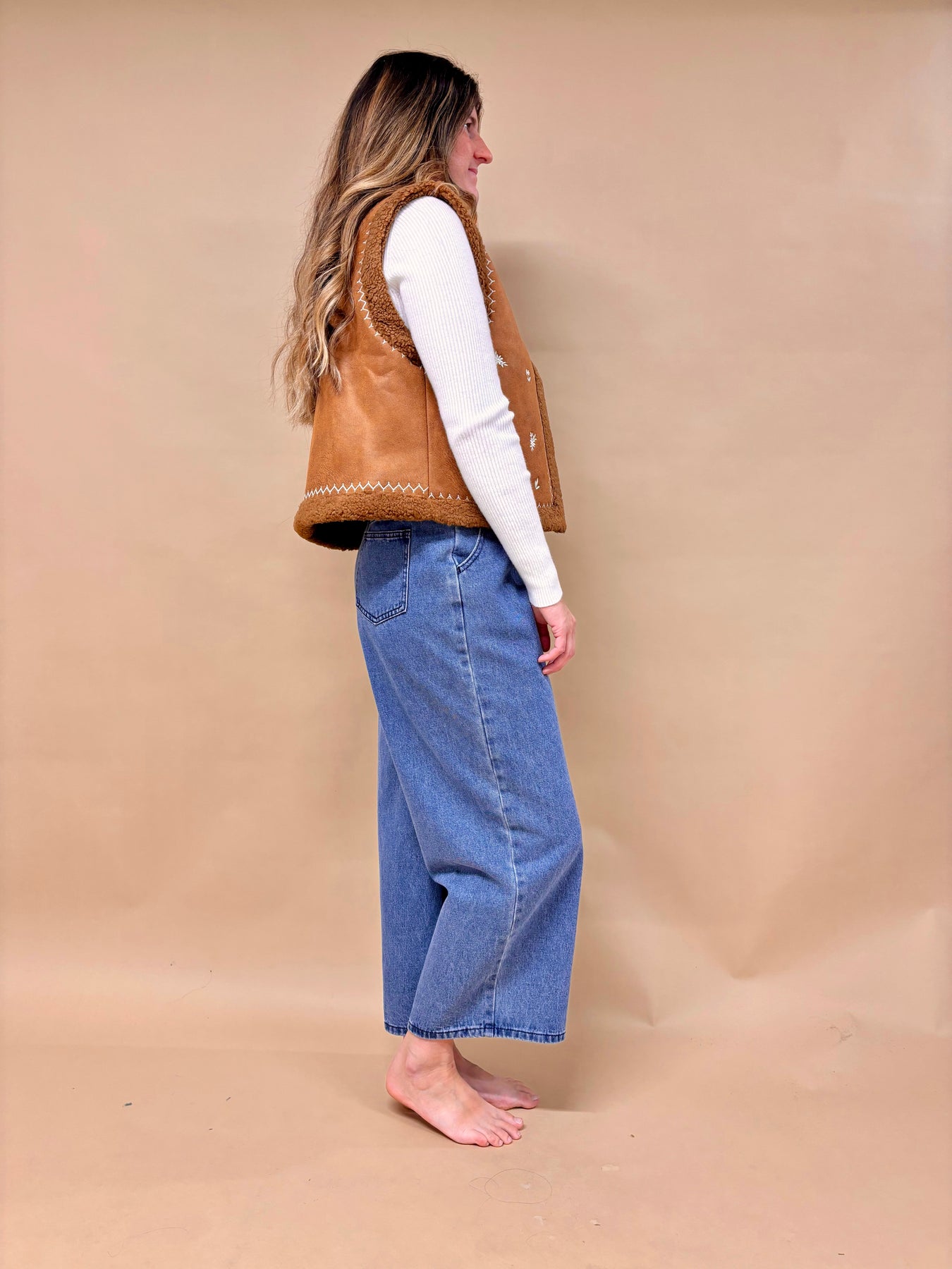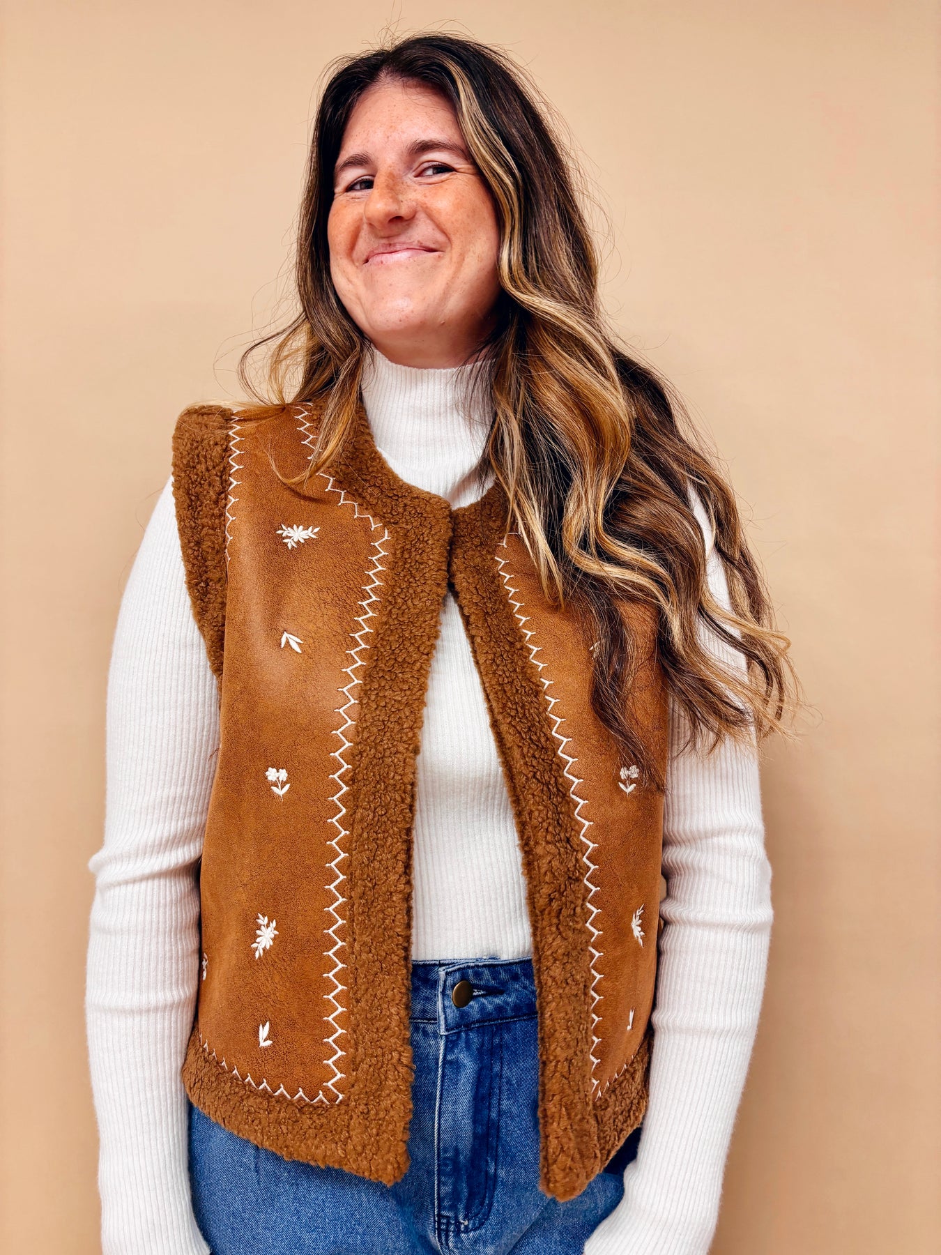 Charlotte Embroidered Suede Sherpa Lined Vest