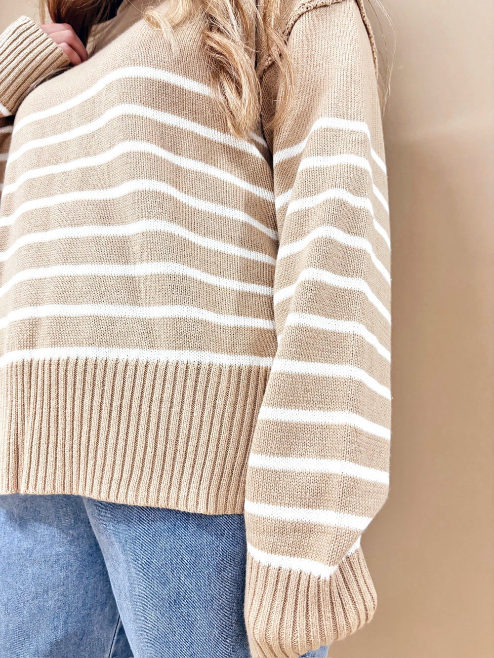 The Ivy is a sure fire go to for any season! Designed with a cozy knit material, a relaxed fit, and a classic striped print, you could wear her anywhere for any occasion!