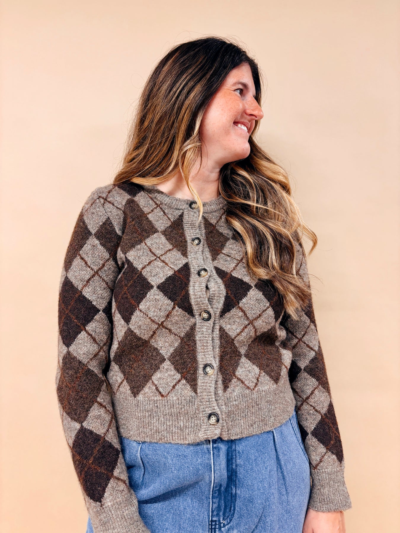 The Trin is a vintage inspired classic! Designed in a rich brown argyle print, with an exceptionally soft wool blend knit material, and a comfortable silhouette, this piece is perfect for any cool weather season!